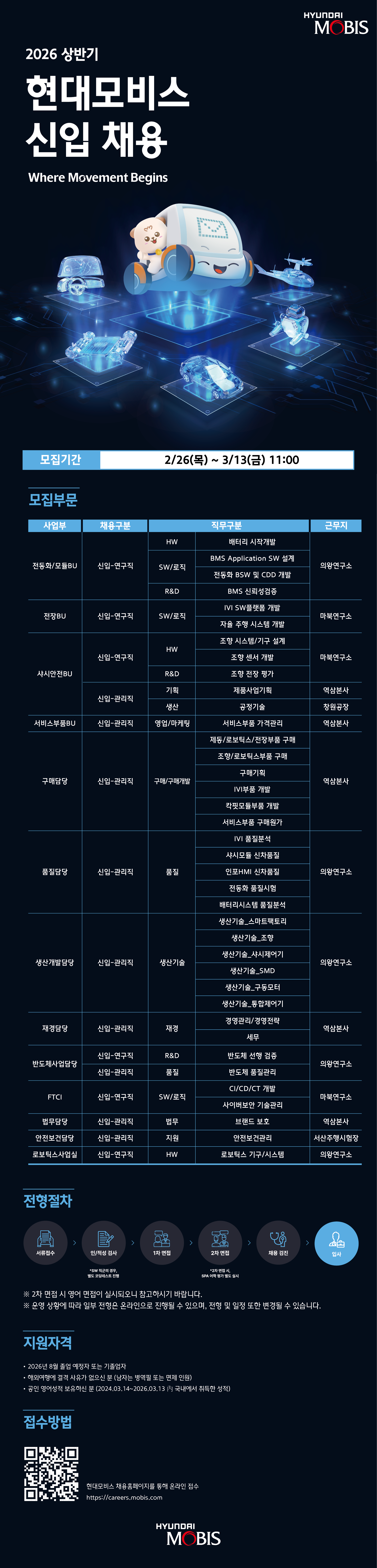 ํ˜„๋Œ€๋ชจ๋น„์Šค 2026 ์ƒ๋ฐ˜๊ธฐ ์‹ ์ž… ์ฑ„์šฉ ์ฑ„์šฉ๊ณต๊ณ  - ์žกํ”„๋žฉ