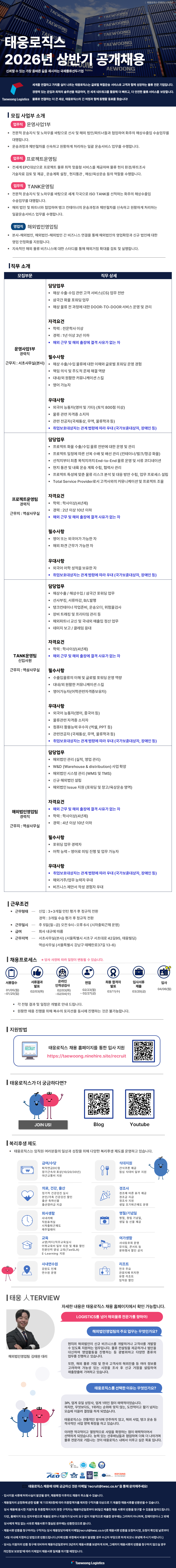 태웅로직스 2026년 상반기 신입/경력 공개채용