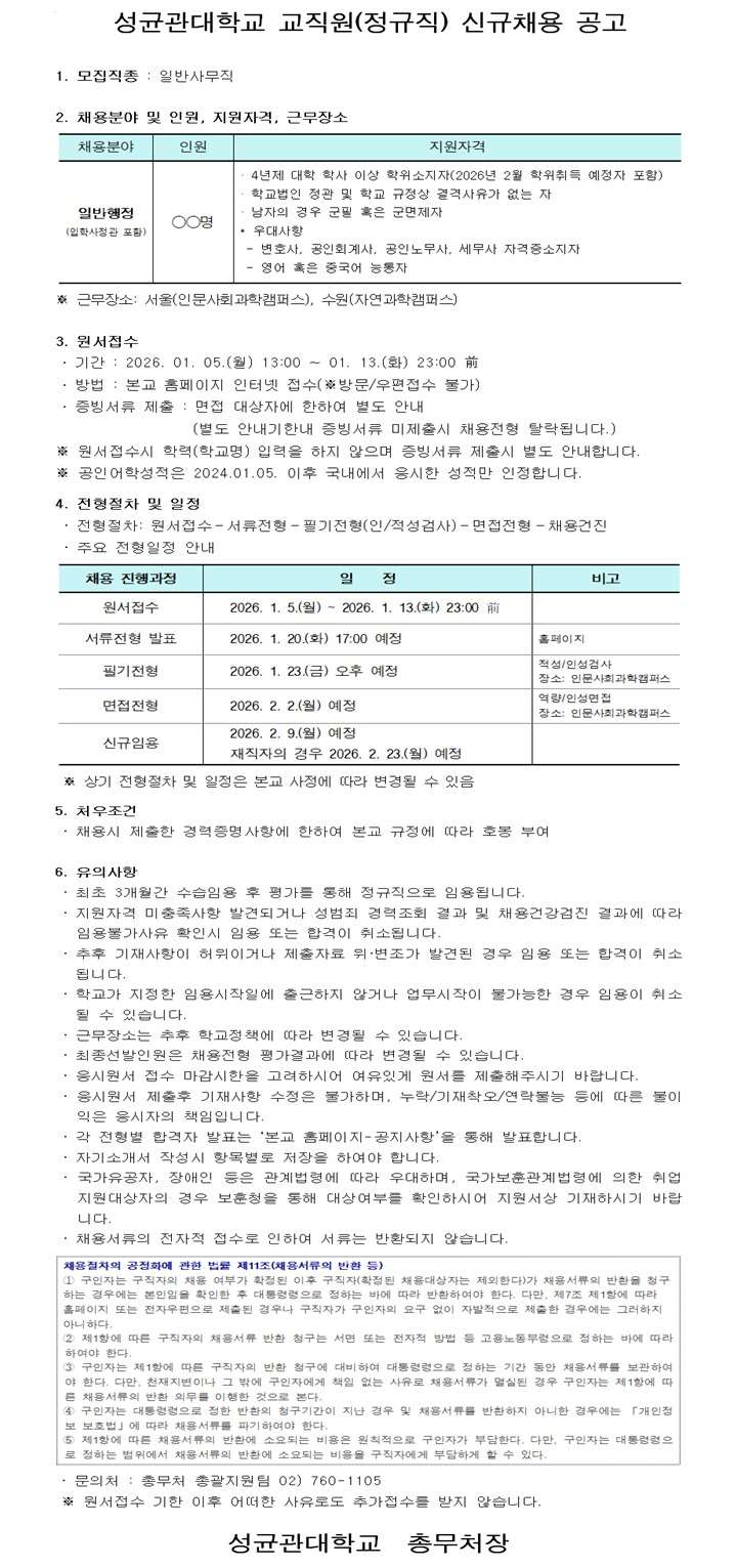 성균관대학교 교직원(정규직) 신규채용