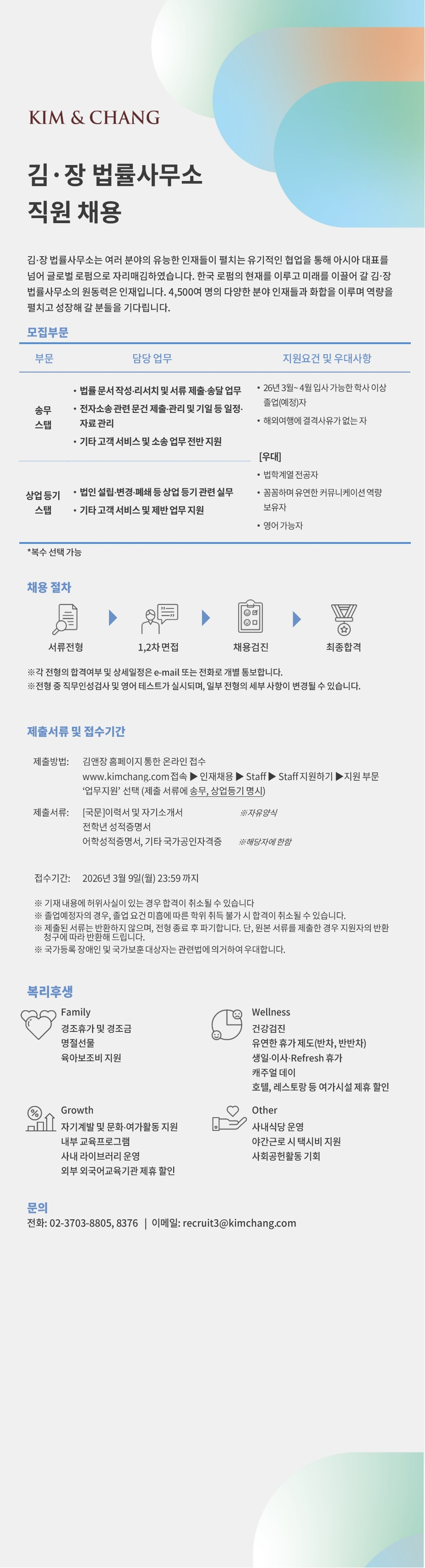 ๊น€์•ค์žฅ ๋ฒ•๋ฅ ์‚ฌ๋ฌด์†Œ ์†ก๋ฌด ๋ฐ ์ƒ์—…๋“ฑ๊ธฐ ์Šคํƒญ(์‹ ์ž…) ์ฑ„์šฉ ์ฑ„์šฉ๊ณต๊ณ  - ์žกํ”„๋žฉ