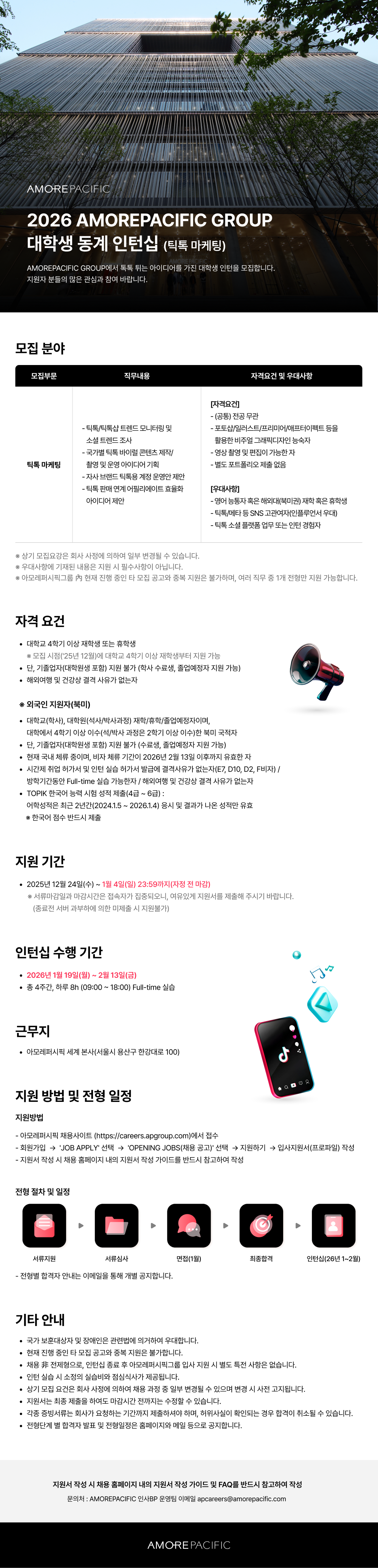 [인턴] 26년 대학생 동계 인턴십 (틱톡 마케팅)